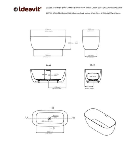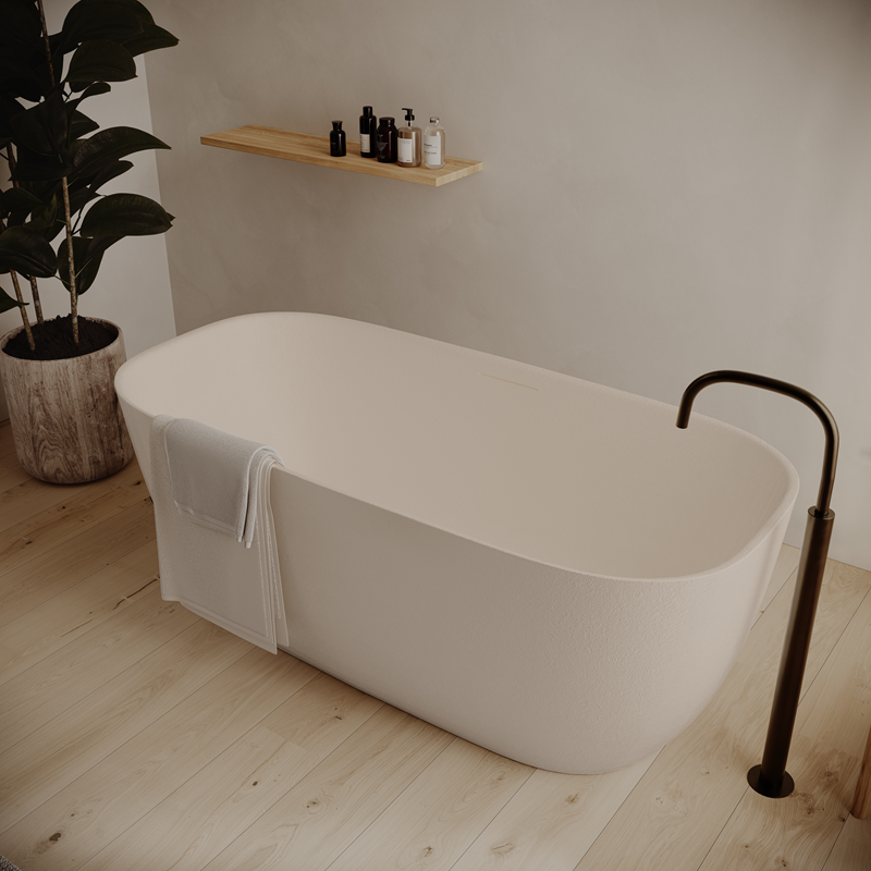 Ontdek de bijzondere charme en het gebruiksgemak van het Ideavit Archtec Eon vrijstaande bad crème kleur! Dit prachtige bad met Rock Texture heeft een gewicht van 65 kg en een inhoud capaciteit van 380 liter. Met een moderne afmeting van 170 x 80 x 63 cm biedt het zowel indrukwekkende duurzaamheid als visuele aantrekkingskracht. De unieke matte crème kleur geeft een tastbare, robuuste schoonheid die perfect aansluit bij elke badkamerstijl. Het is vervaardigd uit een innovatief lichtgewicht composiet. De geavanceerde vuilafstotende laag zorgt ervoor dat het oppervlak er altijd als nieuw uitziet, zodat u jarenlang kunt genieten van de luxe uitstraling. In tegenstelling tot traditionele baden zal dit exemplaar niet snel verouderen of verkleuren. Of u nu kiest voor de fluweelzachte matte witte variant of een warme matte crème, er is altijd een stijl die bij uw voorkeuren past.