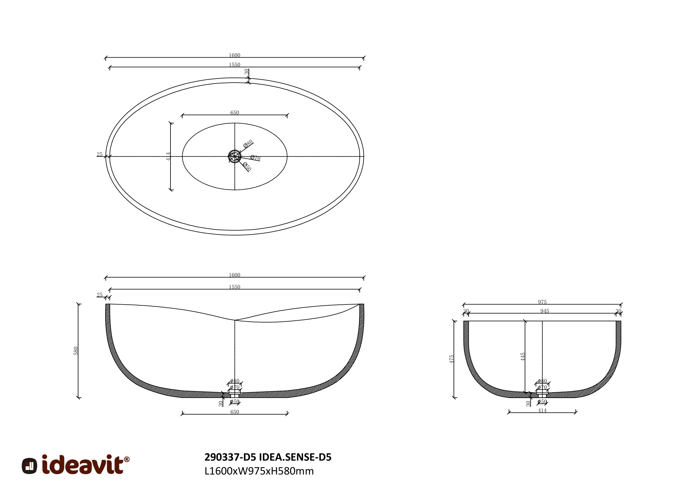 Ideavit IDEA SENSE D1 betonnen vrijstaand bad
