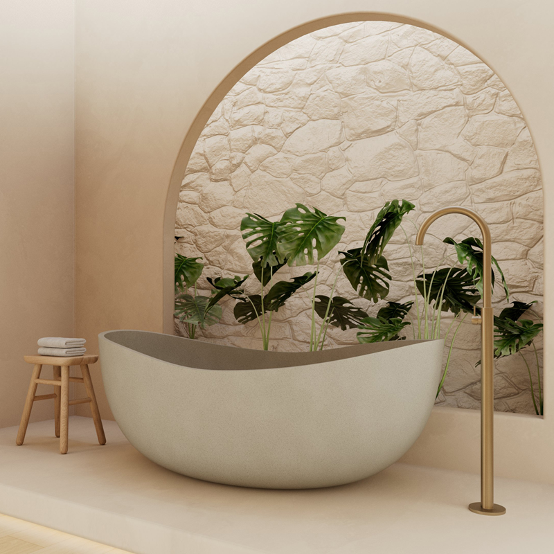 Het Ideavit IDEA SENSE D1 betonnen vrijstaand bad, vertegenwoordigt een unieke samensmelting van robuuste industriële esthetiek en verfijnde moderne designelementen. Dit indrukwekkende bad, zorgvuldig vervaardigd uit hoogwaardig beton in kleurvariant D5, brengt een statement in elke badkamer met zijn opmerkelijke uitstraling en tactiele aantrekkingskracht. Met een RVS vrijstaande badkraan is het plaatje helemaal volledig!. De afmetingen van 160 cm lengte, 97.5 cm breedte en 58 cm hoogte verzekeren een ruime en comfortabele bad ervaring. Daarbij zorgt de anti-kras afwerking en waterdichte nano-coating zorgen voor duurzaamheid en gemakkelijk onderhoud. De aanwezigheid van eventuele kleine luchtgaatjes, een onderscheidend kenmerk van de D1 kleur, voegt een authentiek karakter toe en benadrukt de natuurlijke schoonheid van het materiaal. De inbegrepen Pop-Up afvoer en afvoerpijp complementeren de functionaliteit van dit buitengewoon bad, waardoor het Ideavit IDEA SENSE D1 betonnen bad een icoon van hedendaags badkamerdesign is.
