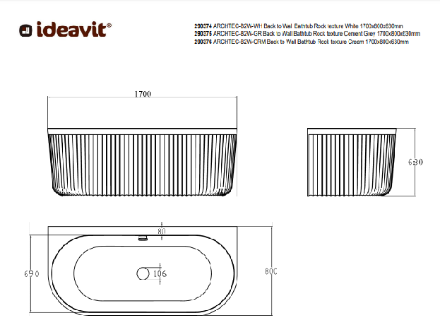 Laat u meevoeren door de elegantie en duurzaamheid van dit bijzondere bad wat zich perfect leent voor plaatsing van een RVS inbouw badkraan. Ontdek de unieke schoonheid en kwaliteit die Ideavit u biedt, en geniet elke dag weer van uw eigen oase van rust en comfort. U kunt met trots dit Ideavit Rock Back to Wall bad in creme keur kiezen als een schitterend onderdeel van uw badkamer. Het is ontworpen om lang mee te gaan en biedt een sterke en duurzame constructie voor uw veiligheid en comfort. De exclusieve Rock Texture afwerking geeft een natuurlijke, aangenaam aanvoelende ervaring.