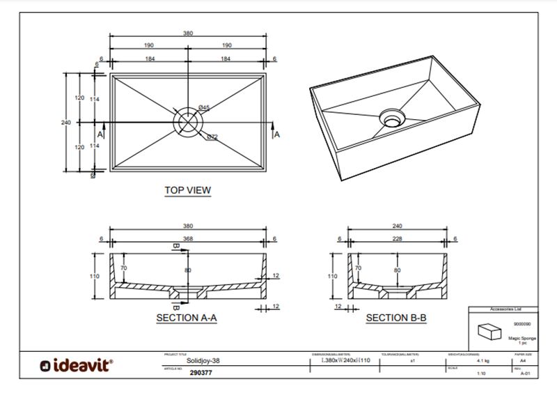 Uw badkamer verdient een transformatie vol stijl en zelfexpressie! De Ideavit Solidjoy 38 wastafel biedt een moderne en elegante oplossing die perfect past bij uw persoonlijke smaak. Met zijn compacte afmetingen en strakke, minimalistische ontwerp is deze wastafel de ideale keuze om uw badkamer een prachtige nieuwe uitstraling te geven. de Solidjoy 38 wastafel wordt zonder wastafelplug en sifon geleverd. Dankzij de duurzame en onderhoudsvrije eigenschappen van het Solid Surface materiaal, kunt u jarenlang genieten van uw nieuwe badkamer. U hoeft zich geen zorgen te maken over vlekken of verkleuring - een mild sopje en een zachte doek zijn voldoende om uw wastafel stralend schoon te houden. De Ideavit Solidjoy 38 wastafel is uitstekend geschikt voor plaatsing van een inbouw wastafelkraan.