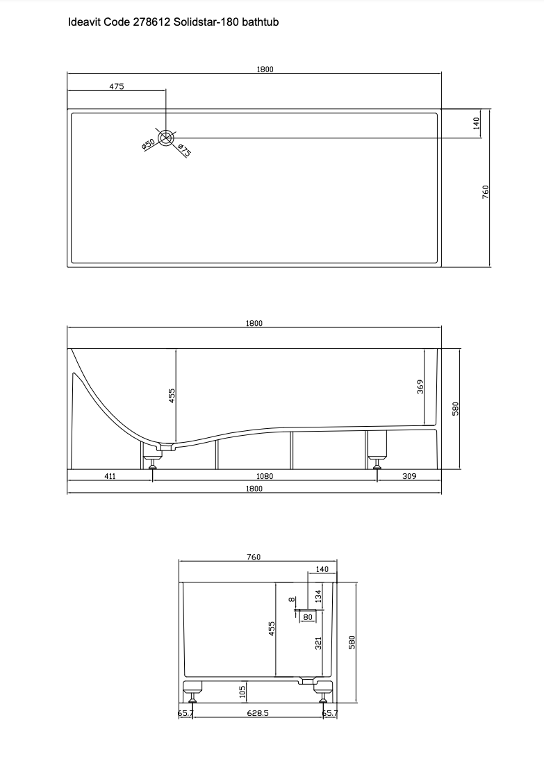 Ideavit Solidstar 180 vrijstaand bad