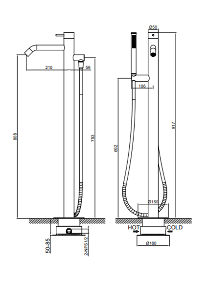 RVS 316L vrijstaande badkraan compleet