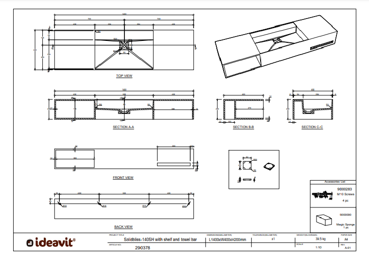 Ideavit Solidbliss 140 - Duurzame schoonheid voor elke badkamer, Ideavit heeft een ware meesterproef gecreëerd met hun Solidbliss 140 SH wastafel. Dit composietmateriaal is niet alleen uiterst duurzaam, maar ook een lust voor het oog. Met 60% Aluminiumtrihydraten (ATH) en 38% hoogwaardige harsen, is dit materiaal niet alleen Uv-bestendig en niet-toxisch, maar ook bijzonder homogeen, compact en onderhoudsvriendelijk. Laat je niet afschrikken door de technische details - deze wastafel is ontworpen om jou het leven gemakkelijker te maken.
