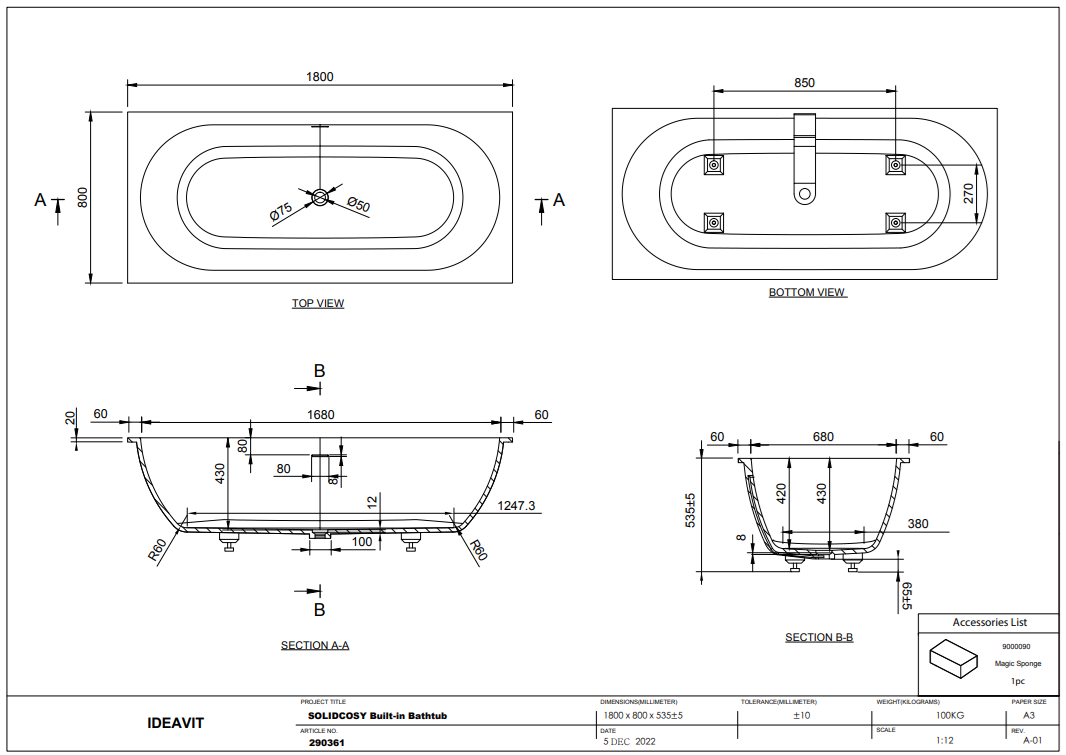 Het Ideavit Solidcozy inbouwbad, een meesterwerk van design dat is ontworpen om harmonie en luxe in uw badkamer te brengen. Dit inbouwbad, vervaardigd uit superieur Solid Surface materiaal, blinkt uit met zijn wit matte afwerking. Daarnaast zorgt het voor een naadloze integratie in elke badkameresthetiek. Met buitenafmetingen van 180 cm lengte, 80 cm breedte en 54 cm hoogte, en een verleidelijk ovale binnenvorm, biedt Ideavit Solidcozy inbouwbad een ruime en uitnodigende badervaring. Het bad is uitgerust met een overloopgat en een Pop-Up afvoer, compleet met een Solid Surface wit mat afdekplaat en afvoerpijp, waardoor zowel veiligheid als een onberispelijke look gegarandeerd zijn. De verstelbare poten ondersteunen een flexibele installatie, waardoor de Solidcozy de ideale keuze is voor diegenen die streven naar een bad met zowel esthetische aantrekkingskracht als praktische bruikbaarheid.