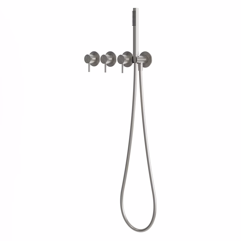 Maak uw badkamer compleet met de RVS 316L douche thermostaatkraan inbouw met stopkranen set van Solid Surfaces B.V., een symbool van luxe en innovatie met een geringe inbouwdiepte van maar 6 cm. Vervaardigd uit topkwaliteit chirurgische RVS 316L met stopkranen. De 2 stopkranen geven i.p.v. een omstelkraan meer vrijheid omdat er nu meerdere uitgangen tegelijk open gezet kunnen worden. Uiteraard is voldoende aanvoer van warm water hierbij heel belangrijk! Beschikbaar in titanium PVD gold, PVD gunmetal black, en PVD raw copper, biedt deze inbouwset een elegante en efficiënte oplossing voor uw doucheruimte. Zeker met de grote 30 cm optionele regendouchekop en wand arm van 40 cm (onder aan de pagina bij te bestellen) Garantie 15 jaar en 3 jaar op het keramische kerox binnenwerk. Inclusief inbouwboxen. Laat je strakke RVS 316L douche thermostaatkraan inbouw met stopkranen je inspireren! Deze prachtige kraan is een waar pareltje, waar je zeker trots op kunt zijn. De kleuren Gunmetal Black, Raw Copper, Gold en Zwart geven elk een unieke, opvallende uitstraling. Dankzij de innovatieve titanium PVD-technologie is de coating niet alleen stijlvol, maar ook uiterst duurzaam. Dit product is niet alleen mooi om te zien, maar ook eenvoudig te onderhouden. Met een beetje milde zeep en een zachte doek blijft je douche er als nieuw uitzien. Gebruik geen schurende producten! Geniet van de luxe en de verwennerij die deze RVS regendoucheset inbouw je biedt. Elke keer dat je onder de douche stapt, zal het je herinneren aan jouw goede smaak en je zelfverzekerde stijl. Deze inbouw regendouchekraan is meer dan zomaar een badkameraccessoire - het is een stijlvolle toevoeging aan je thuis, die je elke dag opnieuw zal opvrolijken. Omarm je smaak voor kwaliteit en laat deze douche je zelfvertrouwen en trots op je interieur versterken. Je verdient niets minder dan het allerbeste!