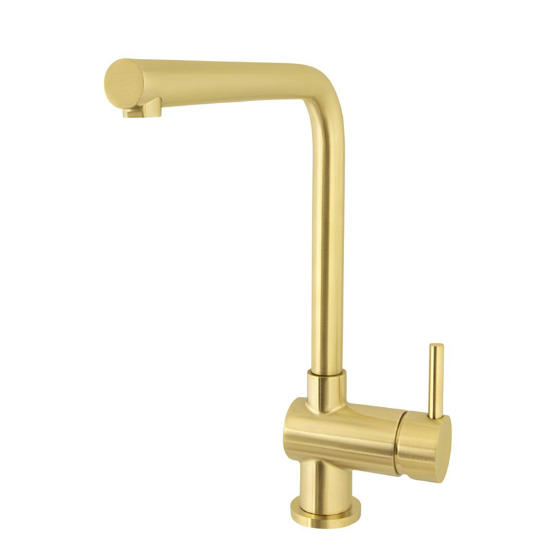 RVS keukenmengkraan haakse uitloop met draaibare uitloop in geborsteld rvs is een combinatie van esthetiek en functionaliteit. Gemaakt van topkwaliteit RVS 304 en geproduceerd in Italie en voorzien van keramische afsluiter. Leverbaar in de kleuren PVD gold, PVD raw copper en PVD gunmetal black. Deze keukenkraan past perfect in het hedendaagse moderne keukendesign met strakke lijnen en een robuuste constructie. De RVS keukenmengkraan heeft een hoogte van 32 cm. De rechthoekige uitloop heeft een sprong van 21 cm en is 22 mm dik. Voor de montage is een gatmaat van 35 mm vereist.