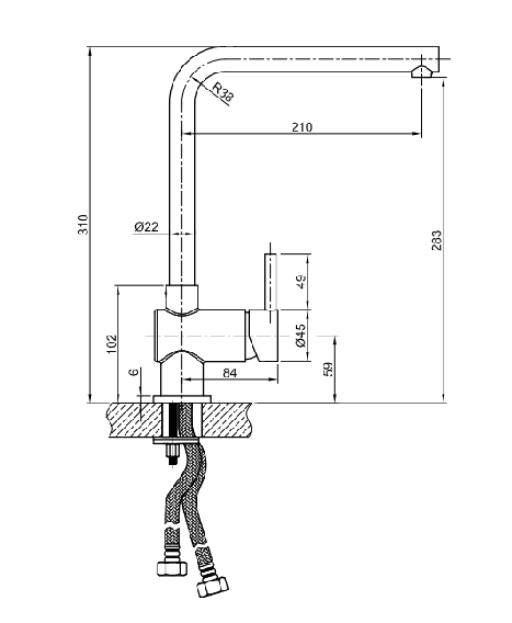 RVS keukenmengkraan haakse uitloop